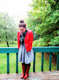 Oh, how I love fall! Cool air and crisp leaves, boots and blazers, scarves and cozy sweaters... Stephen actually really liked this outfit. I still haven't unpacked much from the move, but my sweatshirt dress was one of my staples over the last two months (when I wasn't wearing scrubs) and I managed to grab this blazer and my favorite boots from one of my unpacked boxes right before I left for mass...